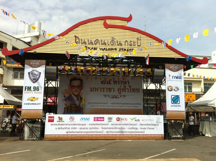 นอกจากนี้ ในวันที่ 5 ธันวาคม 2554 ยังครบรอบ 3 ปี ถนนคนเดิน กระบี่ด้วย หอการค้าจังหวัดกระบี่ จึงร่วมกับผู้ประกอบการค้าได้กำหนดเป็นนโยบายร่วมกันที่จะให้ถนนคนเดินกระบี่ ก้าวสู่ตลาดสีเขียวเพื่อสิ่งแวดล้อม ซึ่งปัจจุบันนี้ถนนคนเดิน กระบี่ ปลอดโฟม 100 เปอร์เซ็นต์ และจะปรับเปลี่ยนบรรจุภัณฑ์ที่เป็นผลกระทบต่อสิ่งแวดล้อม ไม่ว่าจะเป็นแก้วพลาสติก ถุงพลาสติก กล่องพลาสติก ที่ไม่ย่อยสลาย เป็นแก้วกระดาษ กล่องกระดาษ และถุงกระดาษ เพื่อถวายแด่พ่อของแผ่นดิน