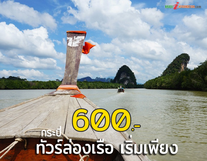 เรือหางยาว ผู้ใหญ่ 600 บาท เด็ก(3-11) 500 บาท