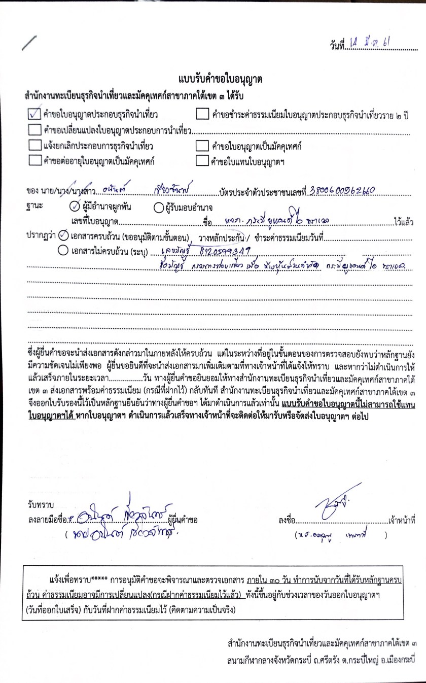 จากที่มีการสอบถามกรณีไม่พบเลขใบอนุญาตประกอบธุรกิจนำเที่ยวฯ ของ หจก. กระบี่ ยูแอนด์ไอ ทราเวล นั้น