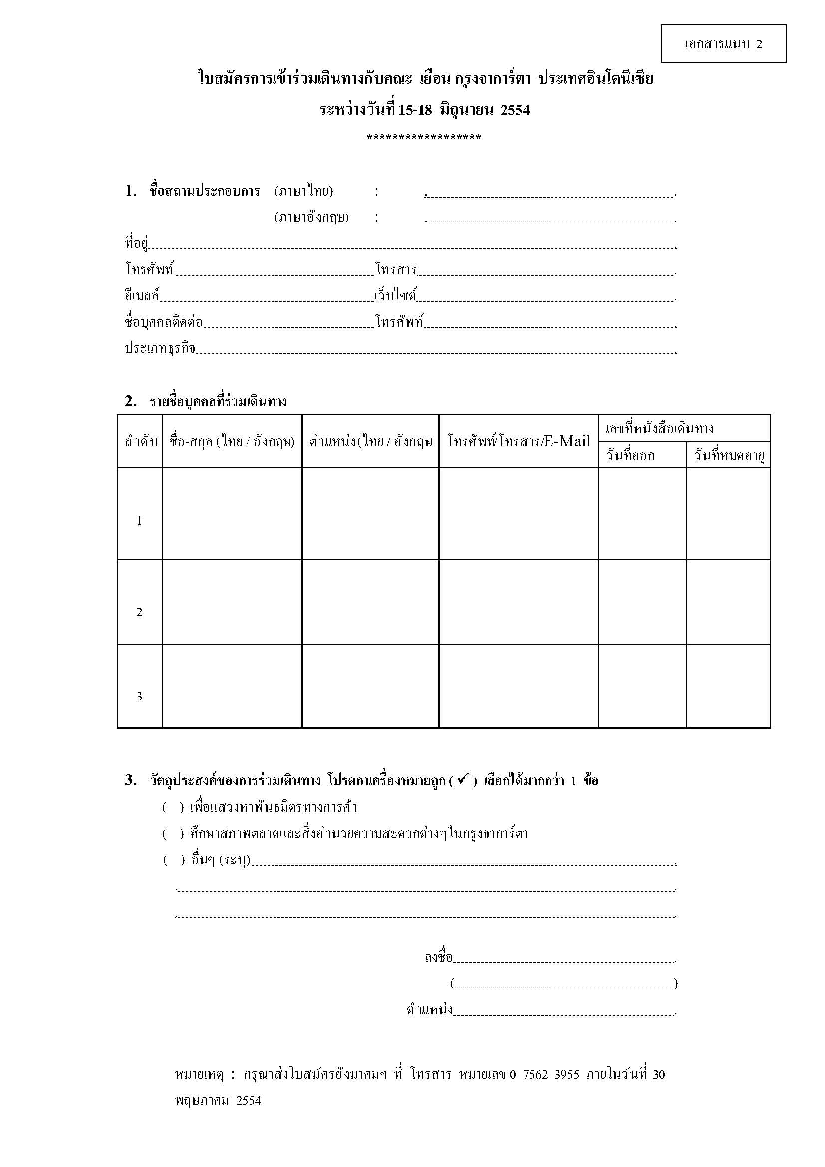 ามารถร่วมงานเฉพาะวันที่ 16 มิถุนายน 2554 ได้โดยไม่ต้องร่วมเดินทางกับคณะทั้ง 4 วัน