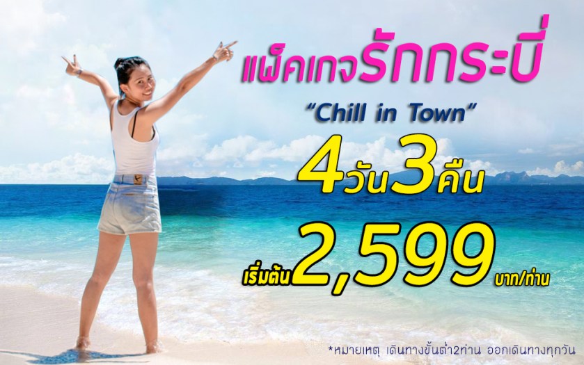 แพ็คเกจทัวร์ “รัก กระบี่” ประทับใจกับ 4 วัน 3 คืน พักผ่อนสบายๆ ดื่มด่ำกับธรรมชาติกระบี่ ด้วยกิจกรรมหลากหลาย เช่นเที่ยวหมู่เกาะ, ดำน้ำชมปะการังรวมทั้งโปรแกรมกับสถานที่ท่องเที่ยวที่สำคัญ เช่น ทะเลแหวก อ่าวไร่เล เกาะปอดะ และ เกาะพีพี